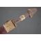 Couteau Touareg début XXè, poignée et fourreau recouvert de cuir et peau de serpent, lame acier double tranchant gravée.