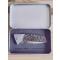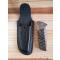 Couteau pliant Artisanal, système Pompe Avant, lame inox 90CrMoV18, 97 x 25 x 2,5mm, pivot inox trempé Ø4mm M3 sur bagues de calage bronze/béryllium, platines inox z20c13, ép 12/10e, fausse pièce guillochée inox z40c13, manche molaire de mammouth stabilisée, mitres Titane qualité aéronautique Gr5, visserie inox et carbone noir. Dim ouvert/fermé 213/120mm, poids 189g. Étui cuir noir moulé sur mesure avec passant ceinture. Livré dans sa boite métallique. Frais de port offerts