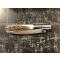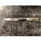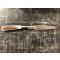 Lame de 11 cm aspect mat en acier INOX 12C27 - Dureté de 52 HRC - Cotes fixées sur 3 points par fil inox - Ressort guilloché main
