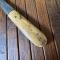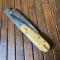 Plaquettes en os agrémenté de frises estompées, lame en bon état fils sans accident, pas de jeu , marquage bien visible .