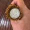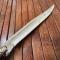 Belle état pour son âge, pas de jeu , lame très tranchante , infime tache à la pointe qui peuvent facilement être nettoyé .Manche en bois de chevreuil, Pommeau incrusté d'une pièce Allemande d'un Mark en argent (5,5 grammes) ,