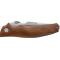La lame en acier AUS8 à haute teneur en carbone offre une excellente rétention de tranchant tout en étant facile à affûter. Sa pointe en forme de lance renforce sa robustesse. Un goujon pratique sur le dos facilite l'ouverture du couteau tout en permettant au pouce d'appliquer davantage de force lors de la coupe. La finition satinée de la lame s'accorde parfaitement avec le manche en noyer mat, au desgin ergonomique. Avec un poids légèrement supérieur à 200g, ce couteau offre un équilibre idéal en main.