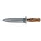 COUTEAU DE CHASSE AVEC UNE LAME DE PRES DE 240 MM DE LONG ET 40 MM DE LARGE, PLUS UNE RAINURE POUR LE SANG. LAME EN ACIER 440C ORNEE D'UN SIGNE DE BRANCHE, D'UN SALUT DE CHASSEUR ET DU LOGO WALTHER. LIVRE AVEC ETUI EN CUIR POUR CEINTURE.