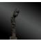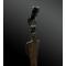 Fusée représentant une figure anthropomorphe assise, la tête inclinée vers l’avant, regardant vers le bas.