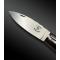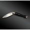 Lame à un tranchant à onglet, en acier sandvik 12C27, marquée « Le MORTA » et signée « Atelier JHP », guillochée au dos.