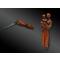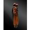 Poignée en bois représentant un moine debout habillé d’un scapulaire, un chapelet accroché à sa ceinture, tenant dans les bras un enfant.