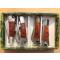 4 petits couteaux en acier, le manche est garni de 2 plaquettes en bois exotique