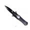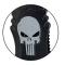 Couteau de poche à ouverture assistée avec lame en acier noir. Décoration tête de mort Punisher, poignée moletée en aluminium et plastique avec clip ceinture.