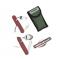 Couteau couvert camping « HERBERTZ », manche 11 cm rouge démontable en 2 éléments de chacun 3 pièces, soit 6 pièces inox, en étui.