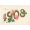 CPA Bonne Année 1908 Fleurs roses Trèfle Gaufrée Relief