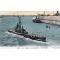 Carte postale représentant le sous-marin Le Castor à La Pallice. L'image montre le sous-marin en mer avec des marins à bord, et un quai avec d'autres bateaux en arrière-plan. Le drapeau français est visible sur le sous-marin.