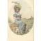 CPA illustrée SMITH - Joyeuses Pâques - Jolie Jeune femme mouton lapin - Rare