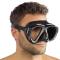 MASQUE EN SILICONE AVEC VERRES SÉPARÉS ET INCLINÉS VERS LE BAS : assemblé avec des matériaux et des méthodes dédiés aux masques haut de gamme et techniques.