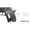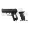Longueur du canon : 21,90 cm Calibre : 4,5 mm Type de munition : Bille acier Capacité du chargeur : 18 coups Fonctionnement : Co2 Vitesse :146 m/s Finition : ABS Polymère Poids : 490 grammes .