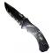 Crossnar - Couteau Pliant Alu Décor Scorpion Lame Noire Semi-Dentée - 10871