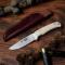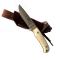 C'est un petit couteau polyvalent destiné aux chasseurs Il est monobloc avec des poignées micarta blanc, doté de viroles en acier satiné. Il est parfait lors de vos sorties à la chasse pour préparer le gibier ou votre déjeuner