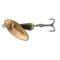 Cette cuillère tournante, développée par Hiroyuki Motoyama pour les petits cours d`eau, tourne dès son contact avec l`eau. Le bord légèrement affûté de la palette aide à une augmentation rapide de la rotation. La goutte d`eau en lest central est dotée d`un jeu important diminuant l`effet de tension de la ligne.