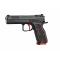 Caractéristiques essentielles : calibre 9×19, canon 5", poids ~1330 g, capacité 17 coups, détente SA/DA match, usage tir sportif / précision.