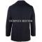 Les poches étaient souvent presque verticales et sur les flancs, plutôt qu'horizontales et au niveau des poignets. Il était fait de laine très lourde, de couleur bleu marine foncé, avec un rabat sur le côté face.