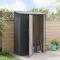 Cabanons de jardin Anthracite 140,5 x 74 x 200 cm Mét??Ce cabanon de jardin en métal est une solution moderne pour le rangement à l'extérieur, super conçu pour embellir votre jardin ou votre terrasse. Avec son cadre en métal durable et son design rectangulaire stylé, il mixe bien fonctionnalité et esthétique. Son style minimaliste fait que cet abri peut s'adapter à plein d'endroits et reste toujours chic. Métal résistant à la corrosion Ce cabanon est fait en métal qui résiste très bien aux intempéries, donc il va durer longtemps. Il garde vos outils de jardinage et autres essentiels bien à l'abri, tout en vous aidant à garder un espace extérieur dégagé. Mécanisme de verrouillage pour la sécurité Avec sa porte qui a un système de verrouillage, ce cabanon de jardin ajoute une couche de sécurité. Il vous rassure en gardant vos affaires à l'abri des intrus. Son design pratique permet d'accéder facilement tout en assurant une bonne protection. Drainage efficace de l'eau Avec son toit incliné, ce cabanon en métal est fait pour un bon drainage des eaux de pluie. Cela empêche l'eau de s'accumuler, gardant un environnement sec et sûr pour vos objets stockés. Conception résistante aux intempéries La structure en métal du cabanon supporte bien les changements de temps, maintenant son intégrité et son apparence au fil des années. Ses caractéristiques résistantes aux intempéries le rendent idéal pour l'été et au-delà, prolongeant son utilisation dans divers climats. Détails d'assemblage Ce cabanon en métal doit être monté par deux personnes avec un tournevis. Chaque pièce est bien conçue pour un assemblage simple, assurant que l'abri est stable et répond à vos besoins de rangement.