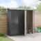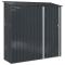 Cabanons de jardin Anthracite 203,5 x 73 x 200 cm Mét??Ce cabanon de jardin en métal est une solution moderne pour le rangement à l'extérieur, super conçu pour embellir votre jardin ou votre terrasse. Avec son cadre en métal durable et son design rectangulaire stylé, il mixe bien fonctionnalité et esthétique. Son style minimaliste fait que cet abri peut s'adapter à plein d'endroits et reste toujours chic. Métal résistant à la corrosion Ce cabanon est fait en métal qui résiste très bien aux intempéries, donc il va durer longtemps. Il garde vos outils de jardinage et autres essentiels bien à l'abri, tout en vous aidant à garder un espace extérieur dégagé. Mécanisme de verrouillage pour la sécurité Avec sa porte qui a un système de verrouillage, ce cabanon de jardin ajoute une couche de sécurité. Il vous rassure en gardant vos affaires à l'abri des intrus. Son design pratique permet d'accéder facilement tout en assurant une bonne protection. Drainage efficace de l'eau Avec son toit incliné, ce cabanon en métal est fait pour un bon drainage des eaux de pluie. Cela empêche l'eau de s'accumuler, gardant un environnement sec et sûr pour vos objets stockés. Conception résistante aux intempéries La structure en métal du cabanon supporte bien les changements de temps, maintenant son intégrité et son apparence au fil des années. Ses caractéristiques résistantes aux intempéries le rendent idéal pour l'été et au-delà, prolongeant son utilisation dans divers climats. Détails d'assemblage Ce cabanon en métal doit être monté par deux personnes avec un tournevis. Chaque pièce est bien conçue pour un assemblage simple, assurant que l'abri est stable et répond à vos besoins de rangement.