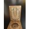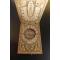 Cadran solaire diptyque en bois, portatif, dit "cadran de nuremberg", les quatre faces contenant des indications imprimées en couleur sur papier, dont les latitudes des villes. À l'intérieur, une boussole, inscription des heures aux chiffres arabes sur le plateau décoré de frise de fleurettes et guirlandes de feuilles.