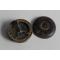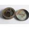 Rare et très ancien cadran solaire de poche en alliage de cuivre gnomon triangulaire rabattable graduations en chiffres indiens (arabes) glace en verre d'origine (irisé par le séjour en terre) Il y a fond du boîtier une aiguille de boussole (non visible à cause de l'irisation du verre) attaque du métal sur une partie de la circonférence, voir photos