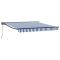 Cadre d'auvent Bleu et Blanc 350 x 250 cmCe store rétractable propose de l'ombre pratique pour des espaces extérieurs comme les jardins et terrasses. Il s'étend ou se rétracte facilement pour moduler la lumière du soleil et l'abri selon vos besoins. Idéal pour des repas en plein air, se détendre ou recevoir des amis, il rend l'environnement plus agréable en protégeant du soleil direct et de la pluie légère. Le store est un super ajout pour profiter au max de votre extérieur tout au long de l'année. Matériaux durables : Fabriqué avec du polyester enduit de PU pour résister aux intempéries. Le cadre en acier et aluminium revêtu de poudre garantit un support stable pour un usage quotidien dehors. Fonctionnement ajustable : Le store peut être actionné avec une manivelle manuelle ou à distance, offrant une grande flexibilité selon vos besoins d'ombre. Structure semi-cassette : Conçu avec des bras rétractables et un rouleau en aluminium pour un déploiement facile et un rangement pratique tout en protégeant le tissu quand c'est replié. Ombre extérieure : Parfait pour patios, jardins et terrasses, le mécanisme rétractable permet d'ajuster la zone d'ombre en fonction du soleil. Exigences d'installation : Conçu pour un montage mural, il nécessite des outils de base comme un tournevis, une perceuse et une pince. Suivez bien les instructions pour réussir l'assemblage et la mise en place. Danger ! Ressort fort lors de l'ouverture. Ne retirez pas cette corde si vous n'avez pas terminé toutes les étapes d'assemblage avec tous les boulons fixés et l'article fixé au mur ! Avertissement! Faire attention en desserrant les bras, car ils sont sous tension ! Un relâchement soudain du bras d'un auvent à bras articulés peut provoquer des blessures. Avertissement : Les instructions d'utilisation doivent être lues avant d'utiliser le produit. Avertissement: Le fonctionnement dans des conditions de gel peut endommager le produit. Utilisation externe dans les bâtiments et autres travaux de construction.
