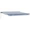 Cadre d'auvent Bleu et Blanc 400 × 300 cmCe store rétractable propose de l'ombre pratique pour des espaces extérieurs comme les jardins et terrasses. Il s'étend ou se rétracte facilement pour moduler la lumière du soleil et l'abri selon vos besoins. Idéal pour des repas en plein air, se détendre ou recevoir des amis, il rend l'environnement plus agréable en protégeant du soleil direct et de la pluie légère. Le store est un super ajout pour profiter au max de votre extérieur tout au long de l'année. Matériaux durables : Fabriqué avec du polyester enduit de PU pour résister aux intempéries. Le cadre en acier et aluminium revêtu de poudre garantit un support stable pour un usage quotidien dehors. Fonctionnement ajustable : Le store peut être actionné avec une manivelle manuelle ou à distance, offrant une grande flexibilité selon vos besoins d'ombre. Structure semi-cassette : Conçu avec des bras rétractables et un rouleau en aluminium pour un déploiement facile et un rangement pratique tout en protégeant le tissu quand c'est replié. Ombre extérieure : Parfait pour patios, jardins et terrasses, le mécanisme rétractable permet d'ajuster la zone d'ombre en fonction du soleil. Exigences d'installation : Conçu pour un montage mural, il nécessite des outils de base comme un tournevis, une perceuse et une pince. Suivez bien les instructions pour réussir l'assemblage et la mise en place. Danger ! Ressort fort lors de l'ouverture. Ne retirez pas cette corde si vous n'avez pas terminé toutes les étapes d'assemblage avec tous les boulons fixés et l'article fixé au mur ! Avertissement! Faire attention en desserrant les bras, car ils sont sous tension ! Un relâchement soudain du bras d'un auvent à bras articulés peut provoquer des blessures. Avertissement : Les instructions d'utilisation doivent être lues avant d'utiliser le produit. Avertissement: Le fonctionnement dans des conditions de gel peut endommager le produit. Utilisation externe dans les bâtiments et autres travaux de construction. Ne laissez pas les enfants jouer avec le dispositif de commande du store. Gardez la télécommande hors de portée des enfants.
