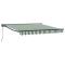 Cadre d'auvent Vert et blanc 300 x 250 cmCe store rétractable propose de l'ombre pratique pour des espaces extérieurs comme les jardins et terrasses. Il s'étend ou se rétracte facilement pour moduler la lumière du soleil et l'abri selon vos besoins. Idéal pour des repas en plein air, se détendre ou recevoir des amis, il rend l'environnement plus agréable en protégeant du soleil direct et de la pluie légère. Le store est un super ajout pour profiter au max de votre extérieur tout au long de l'année. Matériaux durables : Fabriqué avec du polyester enduit de PU pour résister aux intempéries. Le cadre en acier et aluminium revêtu de poudre garantit un support stable pour un usage quotidien dehors. Fonctionnement ajustable : Le store peut être actionné avec une manivelle manuelle ou à distance, offrant une grande flexibilité selon vos besoins d'ombre. Structure semi-cassette : Conçu avec des bras rétractables et un rouleau en aluminium pour un déploiement facile et un rangement pratique tout en protégeant le tissu quand c'est replié. Ombre extérieure : Parfait pour patios, jardins et terrasses, le mécanisme rétractable permet d'ajuster la zone d'ombre en fonction du soleil. Exigences d'installation : Conçu pour un montage mural, il nécessite des outils de base comme un tournevis, une perceuse et une pince. Suivez bien les instructions pour réussir l'assemblage et la mise en place. Danger ! Ressort fort lors de l'ouverture. Ne retirez pas cette corde si vous n'avez pas terminé toutes les étapes d'assemblage avec tous les boulons fixés et l'article fixé au mur ! Avertissement! Faire attention en desserrant les bras, car ils sont sous tension ! Un relâchement soudain du bras d'un auvent à bras articulés peut provoquer des blessures. Avertissement : Les instructions d'utilisation doivent être lues avant d'utiliser le produit. Avertissement: Le fonctionnement dans des conditions de gel peut endommager le produit. Utilisation externe dans les bâtiments et autres travaux de construction.