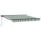 Cadre d'auvent Vert et blanc 350 x 250 cmCe store rétractable propose de l'ombre pratique pour des espaces extérieurs comme les jardins et terrasses. Il s'étend ou se rétracte facilement pour moduler la lumière du soleil et l'abri selon vos besoins. Idéal pour des repas en plein air, se détendre ou recevoir des amis, il rend l'environnement plus agréable en protégeant du soleil direct et de la pluie légère. Le store est un super ajout pour profiter au max de votre extérieur tout au long de l'année. Matériaux durables : Fabriqué avec du polyester enduit de PU pour résister aux intempéries. Le cadre en acier et aluminium revêtu de poudre garantit un support stable pour un usage quotidien dehors. Fonctionnement ajustable : Le store peut être actionné avec une manivelle manuelle ou à distance, offrant une grande flexibilité selon vos besoins d'ombre. Structure semi-cassette : Conçu avec des bras rétractables et un rouleau en aluminium pour un déploiement facile et un rangement pratique tout en protégeant le tissu quand c'est replié. Ombre extérieure : Parfait pour patios, jardins et terrasses, le mécanisme rétractable permet d'ajuster la zone d'ombre en fonction du soleil. Exigences d'installation : Conçu pour un montage mural, il nécessite des outils de base comme un tournevis, une perceuse et une pince. Suivez bien les instructions pour réussir l'assemblage et la mise en place. Danger ! Ressort fort lors de l'ouverture. Ne retirez pas cette corde si vous n'avez pas terminé toutes les étapes d'assemblage avec tous les boulons fixés et l'article fixé au mur ! Avertissement! Faire attention en desserrant les bras, car ils sont sous tension ! Un relâchement soudain du bras d'un auvent à bras articulés peut provoquer des blessures. Avertissement : Les instructions d'utilisation doivent être lues avant d'utiliser le produit. Avertissement: Le fonctionnement dans des conditions de gel peut endommager le produit. Utilisation externe dans les bâtiments et autres travaux de construction.