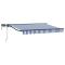 Cadre de store manuel avec LEDs Bleu et Blanc 3,5 x 2 mCe store manuel avec LED est un must-have pour l'extérieur, alliant simplicité et fonctionnalité. Parfait pour embellir les jardins et terrasses, il propose un abri chic qui améliore les espaces privés et commerciaux avec son joli design moderne. Idéal pour les fans de style contemporain, ce store rehausse ton confort extérieur avec une ombre ajustable et une lumière LED agréable pour profiter de chaque saison. Matériaux top : Le store est fabriqué avec un cadre en aluminium peint en poudre et un tissu en polyester qui assure une longévité incroyable, peu importe la météo. Ces matériaux sont choisis pour leur résistance à la décoloration, faisant de ce store un excellent atout pour ton extérieur, quel que soit le climat. Éclairage intégré : Avec les lumières LED, ce store te protège du soleil le jour et éclaire ton espace la nuit. Les LED écoénergétiques apportent une lumière chaleureuse, parfaite pour tes soirées. Facile à utiliser : Son design semi-cassette avec des bras rétractables associe fonctionnalité et style. Tu peux l'utiliser manuellement ou à distance, gérant ainsi parfaitement ton ombre et ta lumière. Polyvalent : Que ce soit pour ton jardin ou ta terrasse, ce store rétractable s'adapte à tous tes événements extérieurs. Il passe facilement d'une protection solaire à une source lumineuse pour tes soirées, augmentant ton confort et son utilité. Entretien simple : S'assemble facilement avec des outils courants comme un tournevis et une perceuse. Son design pratique réduit les besoins d'entretien, et la surface en poudre facilite le nettoyage pour garder un look élégant.
