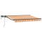 Cadre de store manuel avec LEDs Jaune et Orange 3,5 x 2,5 mCe store manuel avec LED est un must-have pour l'extérieur, alliant simplicité et fonctionnalité. Parfait pour embellir les jardins et terrasses, il propose un abri chic qui améliore les espaces privés et commerciaux avec son joli design moderne. Idéal pour les fans de style contemporain, ce store rehausse ton confort extérieur avec une ombre ajustable et une lumière LED agréable pour profiter de chaque saison. Matériaux top : Le store est fabriqué avec un cadre en aluminium peint en poudre et un tissu en polyester qui assure une longévité incroyable, peu importe la météo. Ces matériaux sont choisis pour leur résistance à la décoloration, faisant de ce store un excellent atout pour ton extérieur, quel que soit le climat. Éclairage intégré : Avec les lumières LED, ce store te protège du soleil le jour et éclaire ton espace la nuit. Les LED écoénergétiques apportent une lumière chaleureuse, parfaite pour tes soirées. Facile à utiliser : Son design semi-cassette avec des bras rétractables associe fonctionnalité et style. Tu peux l'utiliser manuellement ou à distance, gérant ainsi parfaitement ton ombre et ta lumière. Polyvalent : Que ce soit pour ton jardin ou ta terrasse, ce store rétractable s'adapte à tous tes événements extérieurs. Il passe facilement d'une protection solaire à une source lumineuse pour tes soirées, augmentant ton confort et son utilité. Entretien simple : S'assemble facilement avec des outils courants comme un tournevis et une perceuse. Son design pratique réduit les besoins d'entretien, et la surface en poudre facilite le nettoyage pour garder un look élégant.