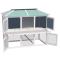 Son toit vert protège la cage contre la pluie tandis que l'intérieur confortable rend le coin de couchage parfait.