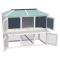Cage double pour animaux Bois Ce clapier de haute qualité à 2 niveaux offre un grand endroit confortable pour garder des lapins et des poulets mignons. Il présente des multiples utilisations : jouer, faire de l'exercice ou s'entraîner. Cette cage offre à vos animaux de compagnie beaucoup d'espace d'exercice. De plus, la construction d'une grille en fil de fer assure votre surveillance des animaux de compagnie et leur permet de garder un oeil des environs et d'avoir suffisamment d'air frais. La cage d'animaux est construite avec le cadre en bois de sapin, qui dure pendant des années. Son toit vert protège la cage contre la pluie tandis que l'intérieur confortable rend le coin de couchage parfait. L'échelle facile à monter mène du niveau inférieur au niveau supérieur. Le plateau coulissant facilite le nettoyage. Les portes se ferment facilement. Cette cage en bois est parfaite pour garder les petits animaux de compagnie. Remarque importante : nous vous recommandons de placer le clapier sous un abri. En conséquence, cela durera plus longtemps.