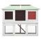 Cage double pour animaux Rouge BoisCe clapier de haute qualité à 2 niveaux offre un grand endroit confortable pour garder des lapins et des poulets mignons. Il présente des multiples utilisations : jouer, faire de l'exercice ou s'entraîner. Cette cage offre à vos animaux de compagnie beaucoup d'espace d'exercice. De plus, la construction d'une grille en fil de fer assure votre surveillance des animaux de compagnie et leur permet de garder un oeil des environs et d'avoir suffisamment d'air frais. La cage d'animaux est construite avec le cadre en bois de sapin, qui dure pendant des années. Son toit vert protège la cage contre la pluie tandis que l'intérieur confortable rend le coin de couchage parfait. L'échelle facile à monter mène du niveau inférieur au niveau supérieur. Le plateau coulissant facilite le nettoyage. Les portes se ferment facilement. Cette cage en bois est parfaite pour garder les petits animaux de compagnie. Remarque importante : nous vous recommandons de placer le clapier sous un abri. En conséquence, cela durera plus longtemps.