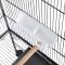 Un bac coulissant au fond de la cage à oiseaux facilite le nettoyage.