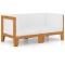 Canapé 2 places avec coussins blanc crème Bois d'acacia massifCe canapé à 2 places en bois est un choix idéal pour vous détendre, profiter du beau temps, faire une sieste ou discuter en famille ou entre amis. Avec son design indémodable, ce canapé ajoute une touche de charme rustique à votre espace de vie. Les 2 sièges d'angle sont en bois d'acacia massif, un bois dur tropical, qui est résistant aux intempéries et très durable. Le canapé a une construction solide et nécessite peu d'entretien. Combiné avec des coussins bien rembourrés, ce canapé offre le plus grand confort. Cet ensemble est également léger et modulaire, ce qui le rend totalement flexible et facile à déplacer pour s'adapter à n'importe quel décor. Vous pouvez le combiner avec d'autres segments modulaires comme table basse, repose-pied et canapé central pour créer vos propres configurations de salon de jardin ! Remarque : afin de prolonger la durée de vie des meubles d'extérieur, nous vous recommandons de les protéger avec une housse imperméable.