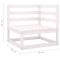 Canapé à 2 places de jardin Blanc Bois de pin solideLe canapé 2 places de jardin est un excellent choix pour vous détendre et profiter du beau temps, faire une sieste ou discuter avec votre famille ou vos amis. Le canapé est fabriqué en bois de pin massif, ce qui le rend robuste et stable. De plus, le canapé en bois présente également une conception modulaire, ce qui le rend complètement flexible et facile à déplacer pour s'adapter à n'importe quelle configuration. Vous pouvez le combiner avec d'autres segments modulaires disponibles dans le menu déroulant pour créer vos propres configurations de salon de jardin personnelles ! Remarque : Afin de prolonger la durée de vie de vos meubles d'extérieur, nous vous recommandons de les nettoyer régulièrement et de ne pas les laisser à l'extérieur sans protection inutilement.Nettoyage : Utiliser une solution savonneuse douce.Stockage : Si possible, stockez dans un endroit frais et sec à l'intérieur. Si le produit est stocké à l'extérieur, protégez-le avec une housse imperméable. Essuyez et séchez l'excès d'eau ou de neige des surfaces planes après la pluie ou une chute de neige. Permettez une circulation d'air suffisante afin d'éviter les dommages liés à l'humidité. Maximum 110 kg par siège.