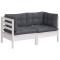 Canapé 2 places de jardin avec coussins anthracite Bois de pinLe canapé 2 places de jardin est un excellent choix pour vous détendre et profiter du beau temps, faire une sieste ou discuter avec votre famille ou vos amis. Le canapé de patio est fabriqué en bois de pin massif, ce qui le rend robuste et stable. Les coussins ajoutent un confort supplémentaire. De plus, ce canapé d'extérieur présente également une conception modulaire, ce qui le rend complètement flexible et facile à déplacer pour s'adapter à n'importe quelle configuration. Vous pouvez le combiner avec d'autres segments modulaires disponibles dans le menu déroulant pour créer vos propres configurations de salon de jardin personnelles ! Remarque: Afin de prolonger la durée de vie de vos meubles d'extérieur, nous vous recommandons de les nettoyer régulièrement et de ne pas les laisser à l'extérieur sans protection inutilement.Nettoyage: Utiliser une solution savonneuse douceStockage: Si possible, stockez dans un endroit frais et sec à l'intérieur. Si le produit est stocké à l'extérieur, protégez-le avec une housse imperméable. Essuyez et séchez l'excès d'eau ou de neige des surfaces planes après la pluie ou une chute de neige. Permettez une circulation d'air suffisante afin d'éviter les dommages liés à l'humidité. Maximum 110 kg par siège.
