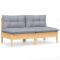 Canapé 2 places de jardin et coussins gris Bois de pin solideLe canapé 2 places de jardin est un excellent choix pour vous détendre et profiter du beau temps, faire une sieste ou discuter avec votre famille ou vos amis. Le canapé de patio est fabriqué en bois de pin massif, ce qui le rend robuste et stable. Les coussins ajoutent un confort supplémentaire. De plus, ce canapé d'extérieur présente également une conception modulaire, ce qui le rend complètement flexible et facile à déplacer pour s'adapter à n'importe quelle configuration. Vous pouvez le combiner avec d'autres segments modulaires disponibles dans le menu déroulant pour créer vos propres configurations de salon de jardin personnelles ! Remarque: Afin de prolonger la durée de vie de vos meubles d'extérieur, nous vous recommandons de les nettoyer régulièrement et de ne pas les laisser à l'extérieur sans protection inutilement.Nettoyage: Utiliser une solution savonneuse douceStockage: Si possible, stockez dans un endroit frais et sec à l'intérieur. Si le produit est stocké à l'extérieur, protégez-le avec une housse imperméable. Essuyez et séchez l'excès d'eau ou de neige des surfaces planes après la pluie ou une chute de neige. Permettez une circulation d'air suffisante afin d'éviter les dommages liés à l'humidité. Maximum 110 kg par siège.