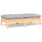 Canapé 2 places de jardin et coussins gris Bois de pin solideLe canapé 2 places de jardin est un excellent choix pour vous détendre et profiter du beau temps, faire une sieste ou discuter avec votre famille ou vos amis. Le canapé de patio est fabriqué en bois de pin massif, ce qui le rend robuste et stable. Les coussins ajoutent un confort supplémentaire. De plus, ce canapé d'extérieur présente également une conception modulaire, ce qui le rend complètement flexible et facile à déplacer pour s'adapter à n'importe quelle configuration. Vous pouvez le combiner avec d'autres segments modulaires disponibles dans le menu déroulant pour créer vos propres configurations de salon de jardin personnelles ! Remarque : Afin de prolonger la durée de vie de vos meubles d'extérieur, nous vous recommandons de les nettoyer régulièrement et de ne pas les laisser à l'extérieur sans protection inutilement. Nettoyage : Utiliser une solution savonneuse douce Stockage : Si possible, stockez dans un endroit frais et sec à l'intérieur. Si le produit est stocké à l'extérieur, protégez-le avec une housse imperméable. Essuyez et séchez l'excès d'eau ou de neige des surfaces planes après la pluie ou une chute de neige. Permettez une circulation d'air suffisante afin d'éviter les dommages liés à l'humidité. Maximum 110 kg par siège. ,