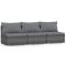 Canapé 3 places avec coussins Gris Résine tresséeCe canapé 3 places élégant est un excellent choix pour profiter de votre temps libre à l'intérieur ou à l'extérieur, il allie parfaitement style et fonctionnalité. Le siège de patio est doté d'un cadre en acier robuste enduit de poudre et de pieds en plastique chromé, très durables. Le canapé 3 places est conçu avec de la résine tressée imperméable, ce qui le rend résistant à l'usure et adapté à une utilisation quotidienne en plein air. Grâce à sa construction légère, ce canapé de jardin est facile à déplacer. Les coussins bien rembourrés et amovibles sont très confortables. De plus, la conception modulaire permet également de placer l'ensemble dans n'importe quel arrangement ou de le combiner avec d'autres segments modulaires pour répondre à vos besoins ! Remarque : afin de prolonger la durée de vie des meubles d'extérieur, nous vous recommandons de les protéger avec une housse imperméable.