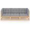 Canapé 3 places de jardin avec coussins Bois de pin massifCe canapé 3 places de jardin est un choix idéal pour vous détendre et profiter du beau temps, faire une sieste ou discuter avec votre famille ou vos amis. Le canapés en bois est fabriqué en pin massif, ce qui le rend robuste et stable. Ce siège de jardin a une construction solide et nécessite peu d'entretien. Les coussins ajoutent un confort supplémentaire. Ce canapé d'extérieur ajoutera une touche de charme rustique à votre espace de vie extérieur. Remarque : afin de prolonger la durée de vie des meubles d'extérieur, nous vous recommandons de les protéger avec une housse imperméable. Maximum 110 kg par siège.