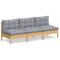 Canapé 3 places de jardin et coussins gris Bois de pin solideLe canapé 3 places de jardin est un excellent choix pour vous détendre et profiter du beau temps, faire une sieste ou discuter avec votre famille ou vos amis. Le canapé de patio est fabriqué en bois de pin massif, ce qui le rend robuste et stable. Les coussins ajoutent un confort supplémentaire. De plus, ce canapé d'extérieur présente également une conception modulaire, ce qui le rend complètement flexible et facile à déplacer pour s'adapter à n'importe quelle configuration. Vous pouvez le combiner avec d'autres segments modulaires disponibles dans le menu déroulant pour créer vos propres configurations de salon de jardin personnelles ! Remarque: Afin de prolonger la durée de vie de vos meubles d'extérieur, nous vous recommandons de les nettoyer régulièrement et de ne pas les laisser à l'extérieur sans protection inutilement.Nettoyage: Utiliser une solution savonneuse douceStockage: Si possible, stockez dans un endroit frais et sec à l'intérieur. Si le produit est stocké à l'extérieur, protégez-le avec une housse imperméable. Essuyez et séchez l'excès d'eau ou de neige des surfaces planes après la pluie ou une chute de neige. Permettez une circulation d'air suffisante afin d'éviter les dommages liés à l'humidité. Maximum 110 kg par siège.