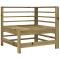 Canapé d'angle avec coussins bois de pin imprégnéCe canapé d'angle en bois, qui se démarque par son design à lattes et ses coussins moelleux, sera un excellent supplément à votre jardin, patio ou terrasse pour profiter d'un moment agréable avec votre famille ou vos amis. Bois imprégné : le bois de pin massif est un matériau naturel magnifique. Le bois de pin a un grain droit et les noeuds lui confèrent un aspect rustique caractéristique. L'imprégnation est un processus de conservation réalisé à l'aide d'autoclaves. Le traitement sous pression augmente la résistance à la pourriture et aux intempéries. Cadre robuste et stable : le cadre en bois rend le canapé de jardin robuste et stable pour une utilisation quotidienne à l'extérieur. Expérience d'assise confortable : le dossier ajoute un confort d'assise supplémentaire au canapé d'extérieur. De plus, le coussin bien rembourré offre du confort pendant votre temps d'assise. Design modulaire : le canapé sectionnel est flexible et facile à déplacer. Vous pouvez le combiner avec d'autres segments modulaires sur notre site Web pour créer votre propre ensemble de salon de jardin ! Bon à savoir : Pour que vos meubles d'extérieur restent beaux, nous vous recommandons de les protéger avec une housse imperméable. Maximum 110 kg par siège. ,