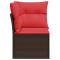 Canapé d'angle avec coussins en poly rattan marronCe canapé d'extérieur allie un design stylé à une solidité qui supporte les pires conditions. Il est parfait pour votre balcon ou jardin. La couleur rouge éclatante s'harmonise avec le cadre en rotin brun, créant un endroit cosy pour des après-midis tranquilles ou des moments de partage. Parfait pour se détendre : Les coussins doux du canapé assurent un confort maximal, idéal pour chiller après une longue journée. Ils sont aussi légers, faciles à déplacer. Construction solide : Avec du rotin de haute qualité, ce canapé est là pour durer tout en restant stylé. Il peut résister aux intempéries, donc votre investissement est safe. Esthétique tendance : Le rouge riche associé à une finition vieillie donne à votre extérieur un look stylé qui incite vos invités à rester. Idéal pour un jardin moderne. Utilisation polyvalente : Parfait pour recevoir des amis, se relaxer en famille ou savourer un café tranquille, ce canapé rend votre espace extérieur super fonctionnel. Confortable pour deux. Entretien simple : Le nettoyage est facile ; il suffit de passer un chiffon humide et de ranger les coussins au sec quand vous ne les utilisez pas pour les garder comme neufs.