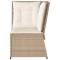 Canapé d'angle de jardin avec coussins beige résine tresséeDétendez-vous et profitez de l'extérieur dans ce confortable canapé de jardin ! Matériau durable : la résine tressée, également connue sous le nom de poly rotin, est un matériau synthétique solide et nécessitant peu d'entretien qui ressemble au rotin naturel. Elle est légère, facile à nettoyer et couramment utilisée pour les meubles d'extérieur en raison de sa durabilité et de ses propriétés de résistance aux intempéries.Expérience d'assise confortable : ce mobilier d'extérieur, doté de coussins épais, offre une expérience d'assise confortable.Housse amovible et lavable : le coussin de siège est doté d'une housse amovible pour un lavage et un entretien faciles.Conception modulaire : ce meuble d'extérieur a une conception modulaire, ce qui le rend complètement flexible et facile à déplacer, afin que vous puissiez créer un agencement de meubles d'extérieur personnalisé. Bon à savoir :Pour que vos meubles d'extérieur restent beaux, nous vous recommandons de les protéger avec une housse imperméable. Maximum 110 kg par siège. Soyez conscient du risque de feux ouverts et d'autres sources de forte chaleur à proximité du produit.