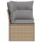 Canapé d'angle de jardin avec coussins beige résine tresséeDétendez-vous et profitez de l'extérieur dans ce confortable canapé de jardin ! Rotin PE : la résine tressée, également connue sous le nom de poly rotin, est un matériau synthétique solide et nécessitant peu d'entretien qui ressemble au rotin naturel. Il est léger, facile à nettoyer et couramment utilisé pour les meubles d'extérieur en raison de sa durabilité et de ses propriétés de résistance aux intempéries.Fonction de rangement avec sac résistant à l'eau : chaque siège de jardin dispose d'un espace de rangement sous l'assise, complété par un sac résistant à l'eau pour ranger les coussins, les jouets et d'autres objets. Le sac intérieur est doté d'un couvercle et peut être solidement fixé au siège à l'aide de bandes auto-agrippantes pour plus de stabilité.Expérience d'assise confortable : ce mobilier d'extérieur, doté de coussins épais, offre une expérience d'assise confortable.Housse amovible et lavable : le coussin de siège est doté d'une housse amovible pour un lavage et un entretien faciles.Cadre robuste et stable : le cadre en acier enduit de poudre assure la solidité et la stabilité du meuble de jardin pour une utilisation quotidienne à l'extérieur.Conception modulaire : ce meuble d'extérieur a une conception modulaire, ce qui le rend complètement flexible et facile à déplacer, afin que vous puissiez créer un agencement de meubles d'extérieur personnalisé. Bon à savoir :Pour que vos meubles d'extérieur restent beaux, nous vous recommandons de les protéger avec une housse imperméable.