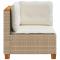 Canapé d'angle de jardin avec coussins beige résine tresséeDétendez-vous et profitez de l'extérieur dans ce confortable canapé de jardin ! Matériau durable : la résine tressée, également connue sous le nom de poly rotin, est un matériau synthétique solide et nécessitant peu d'entretien qui ressemble au rotin naturel. Il est léger, facile à nettoyer et couramment utilisé pour les meubles d'extérieur en raison de sa durabilité et de ses propriétés de résistance aux intempéries.Expérience d'assise confortable : ce mobilier d'extérieur, doté de coussins épais, offre une expérience d'assise confortable.Housse amovible et lavable : le coussin de siège est doté d'une housse amovible pour un lavage et un entretien faciles.Conception modulaire : ce meuble d'extérieur a une conception modulaire, ce qui le rend complètement flexible et facile à déplacer, afin que vous puissiez créer un agencement de meubles d'extérieur personnalisé. Bon à savoir :Pour que vos meubles d'extérieur restent beaux, nous vous recommandons de les protéger avec une housse imperméable. Maximum 110 kg par siège. Soyez conscient du risque de feux ouverts et d'autres sources de forte chaleur à proximité du produit.